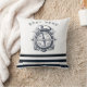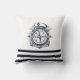 Nautical Hat, Anchor,Wheel Navy Blue Striped Throw Pillow