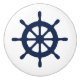 Nautical ship wheel door and drawer pull knobs or handles. Maritime / beach theme design with navy blue blue and white background color. Customizable background color. Old boat helm icon. Make your own sailing / ocean themed interior for sailor, skipper or captain. Fun DIY accessories for home and office. Great for beautiful seaside / coastal kids room, kitchen, bathroom, bedroom cabinets, nursery, baby room, children's play room etc.