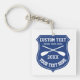 Nautical keychain with crossed rowing oars logo. Square acrylic key chain gift with custom text. Personalized gift idea for rowing crew, team, students, boat captain, sailor, skipper, friends, family, coworkers, boss etc. Navy blue and white shield emblem with row paddles and date.