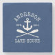 Nautical Lake House Family Name Anchor Oars Navy Blue Stone Coaster