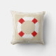 Classic nautical style throw pillow featuring a neutral sandy taupe, white striped frame and a red and white life preserver.