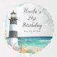 Beautiful birthday balloon with a nautical black and white lighthouse, starfish and shells. Perfect for a birthday party. The words can be changed to suit your own details or requirements