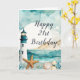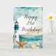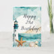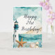 Beautiful birthday card with a nautical black and white lighthouse, starfish and shells. Perfect for a birthday party. The words can be changed to suit your own details or requirements