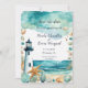 Beautiful wedding save the date Card with a nautical black and white lighthouse, starfish and shells. Perfect for a wedding. The words can be changed to suit your own details or requirements