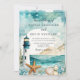 Beautiful wedding invitation with a nautical black and white lighthouse, starfish and shells. Perfect for a wedding. The words can be changed to suit your own details or requirements