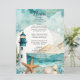 Beautiful wedding menu with a nautical black and white lighthouse, starfish and shells. Perfect for a wedding. The words can be changed to suit your own details or requirements