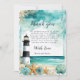 Beautiful wedding thank you card with a nautical black and white lighthouse, starfish and shells. Perfect for a wedding. The words can be changed to suit your own details or requirements