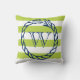 Nautical lime green stripe navy blue rope monogram throw pillow
