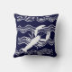 Nautical Lobster Navy Blue White Wave Stripes Throw Pillow