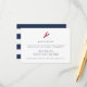 Designed to coordinate with our Nautical Mix wedding invitation collections, this coastal chic wedding reception enclosure card in summery red, white and blue features a small red lobster illustration at the top with elegant navy blue lettering and a navy and white horizontal striped backer. Add your reception details like timing, venue and address using the fields provided.
