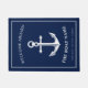 A long style doormat featuring a nautical anchor and the custom name of the boat owner and boat.
