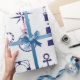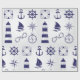 Nautical Marine Elements Navy Blue Coastal Icons Wrapping Paper