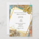 Featuring a beautiful mix of watercolor blue; orange; faux gold and brown tones blending into each other a vintage illustration of a mustard yellow octopus crawling along a sea bed that has pretty orange and brown coral and golden colored sand beds with vibrant bubbles. Based on a nautical, marine creature theme, the background has liquid ink streaked tones resembling ocean tides and waves on which a geometric golden frame with a white inlay has a template for your personalized statement of the special occasion you are celebrating. This elegant and stylish graphic design is ideal for all under the sea; ocean; coastal and beach themed special occasions. Personalize the templates to suit your event.
