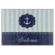 Nautical Mint Navy Blue Anchor Custom Name Cutting Board