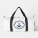 This Nautical Modern Heart Anchor White & Navy Duffle Bag is the perfect accessory for any sea lover! Personalized with a "welcome aboard" text and your boat name, this stylish bag will surely turn heads on your next sailing adventure.