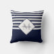 Nautical Modern Navy Blue Gray Stripes Monogram Throw Pillow