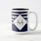 Nautical Modern Navy Blue Gray Stripes Monogram Two-Tone Coffee Mug