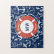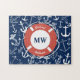 Nautical Monogram Navy Blue Anchor Pattern Jigsaw Puzzle