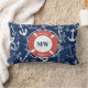 Nautical Monogram Navy Blue Anchor Pattern Lumbar Pillow