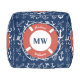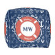 Nautical Monogram Navy Blue Anchor Pattern Pouf