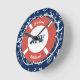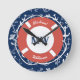 Nautical Monogram Navy Blue Anchor Pattern Round Clock