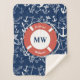 Nautical Monogram Navy Blue Anchor Pattern Sherpa Blanket