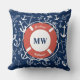 Nautical Monogram Navy Blue Anchor Pattern Throw Pillow