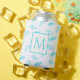 Nautical monogram Seashell Shells Aqua Teal Blue Can Cooler