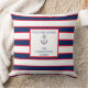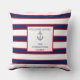 Nautical Monogram Stripes Blue Navy White Red Throw Pillow
