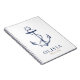 This design features a navy blue sketch style anchor for a nautical look for your journal or notebook. You can personalize it with your name.
