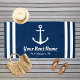 Nautical Navy Anchor Custom Boat Name Beach Towel