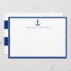 Nautical navy anchor custom note card. A navy blue and white nautical themed anchor flat note card which is the perfect addition to any stationery wardrobe. Maybe you live near the sea, own a boat or are just a sea lover - this card would be a great feature in your stationery wardrobe. The card can be personalized with the inclusion of a name.