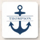 A sharp nautical navy anchor monogram beverage coaster featuring a bold anchor centerpiece with the couple's name across a ribbon banner. The classic navy and white color palette brings timeless coastal charm to wedding receptions, rehearsal dinners, or everyday entertaining. Pairs perfectly with coordinating Nautical Anchor Monogram suite products. All text is fully customizable.