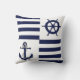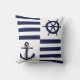 Nautical navy anchor/wheel/navy blue stripe throw pillow