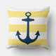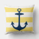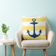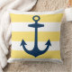 Nautical Navy Anchor Yellow White Stripe Throw Pillow