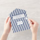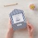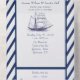 A very beautiful and elegant navy and white striped print wedding invitation, with navy yacht accent.