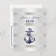 Nautical Navy Blu Anchor Silver Wht RSVP 1 Invitation Postcard