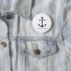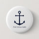 Modern Minimalist Nautical Round Button featuring navy blue anchor with personalized name in navy blue modern sans serif font style on white background.