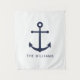 Nautical Navy Blue Anchor and Custom Name Tapestry