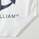 Modern Minimalist Nautical Tapestry featuring navy blue anchor with personalized name in navy blue modern sans serif font style on white background.