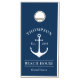A bold navy cornhole set featuring a white anchor framed by your family name, established year, and "Beach House" with your coastal town in crisp white typography. The deep navy boards create a striking nautical statement for your beach house, lake house, or any waterfront gathering. All text is fully customizable.