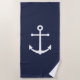 Modern Minimalist Nautical Beach Towel featuring white anchor on navy blue background.