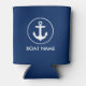 Nautical Navy Blue Anchor Boat Name Can Cooler