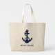 Nautical Navy Blue Anchor Boat Name Custom Large Tote Bag