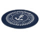 Serve up boat snacks on this awesome custom cutting board! Nautical design in classic navy blue and white features your boat name and ship's registry set on a rope badge with an anchor illustration in the center.