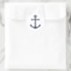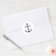 Modern Minimalist Nautical Round Sticker feature navy blue anchor on white background.