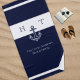 Nautical Navy Blue Anchor Coastal Monogram Name Beach Towel