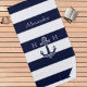 Nautical Navy Blue Anchor Coastal Monogram Name Beach Towel