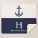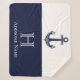 Nautical Navy Blue Anchor Coastal Monogrammed Sherpa Blanket
