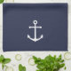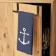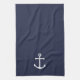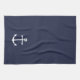 Modern Minimalist Nautical Kitchen Towel featuring white anchor on navy blue background.